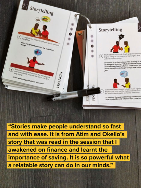 “When I compare with the materials of life skills, these equip you in a way that is different.Some pictures even speak for themselves - people understand these more.”