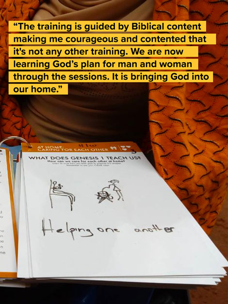 “Before the program, we never used to sit and have a decent conversation and he could drink a lot and was never open with his finance. He used to shop all food stuffs even onions but since the program, he has started leaving money for me to buy the food stuffs. We even have peaceful and loving conversation. It is surprising that he has proposed that I should start a small business with his support something that he never agreed to at all before.”