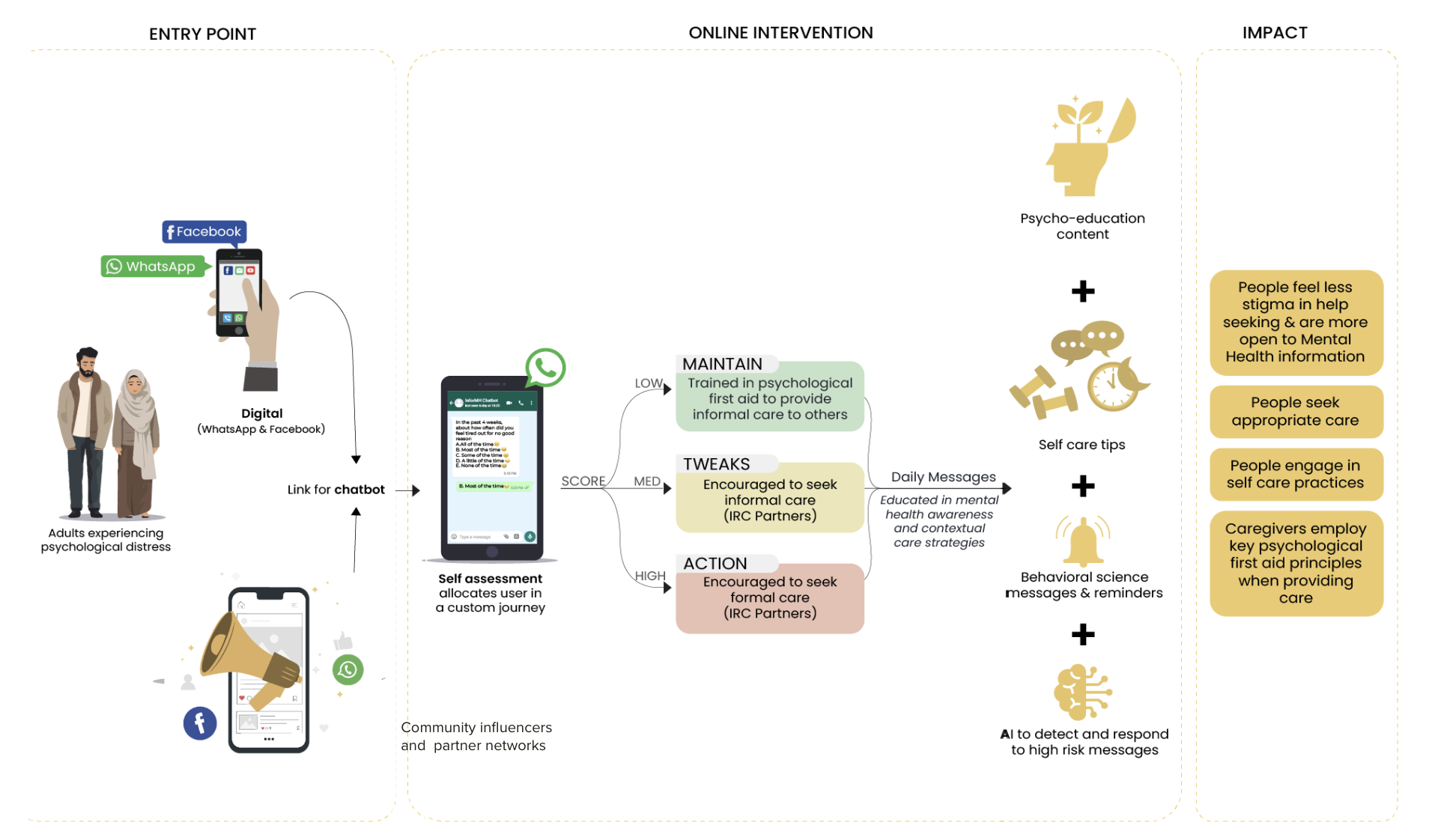 Using behavioral science and human-centered design to bridge the information and behavioral gaps that prevent people from seeking mental health and psychosocial support.